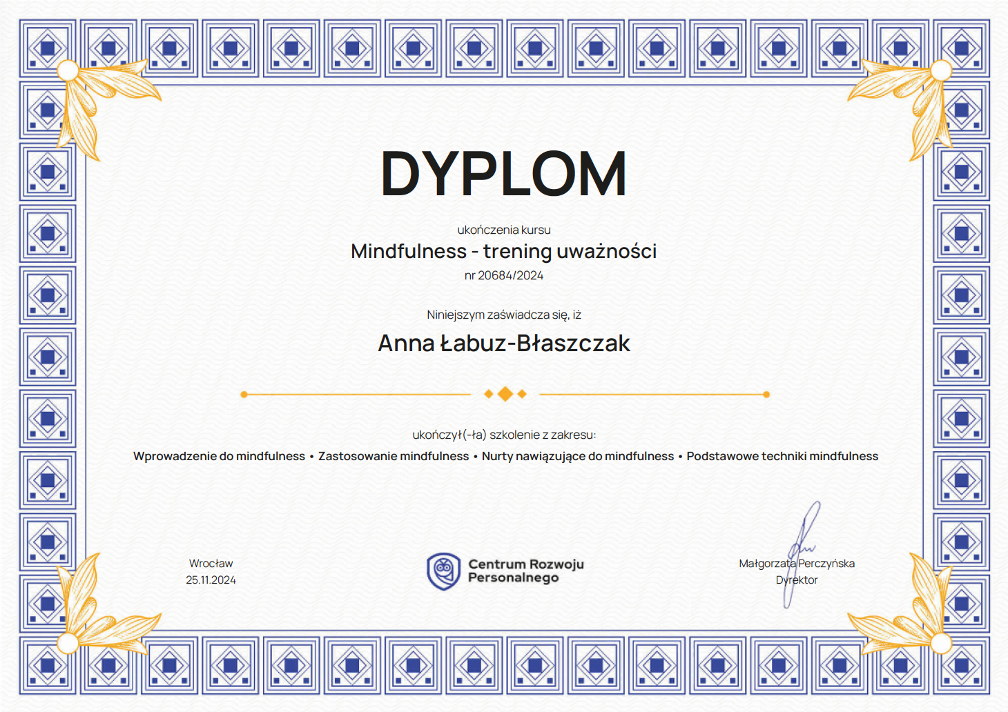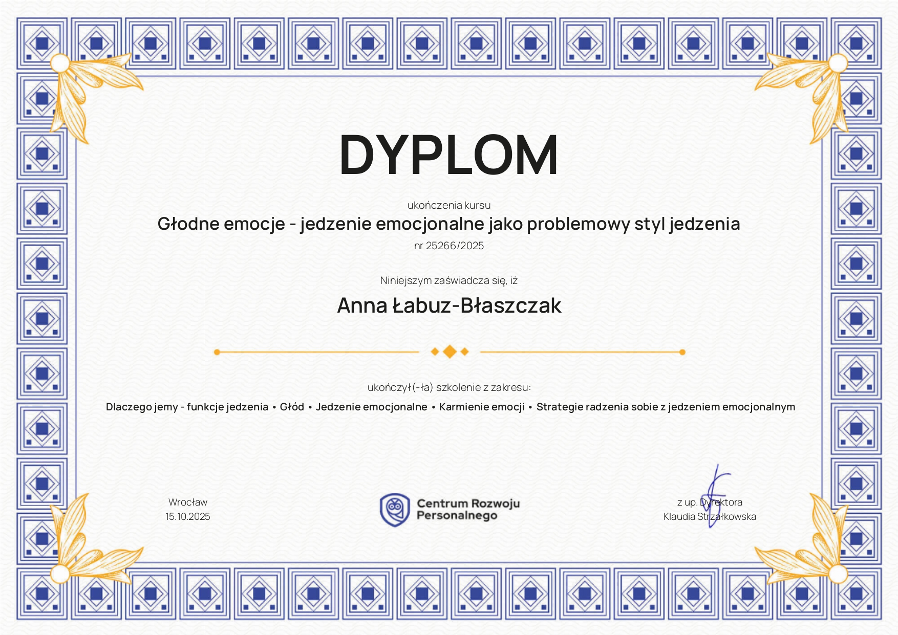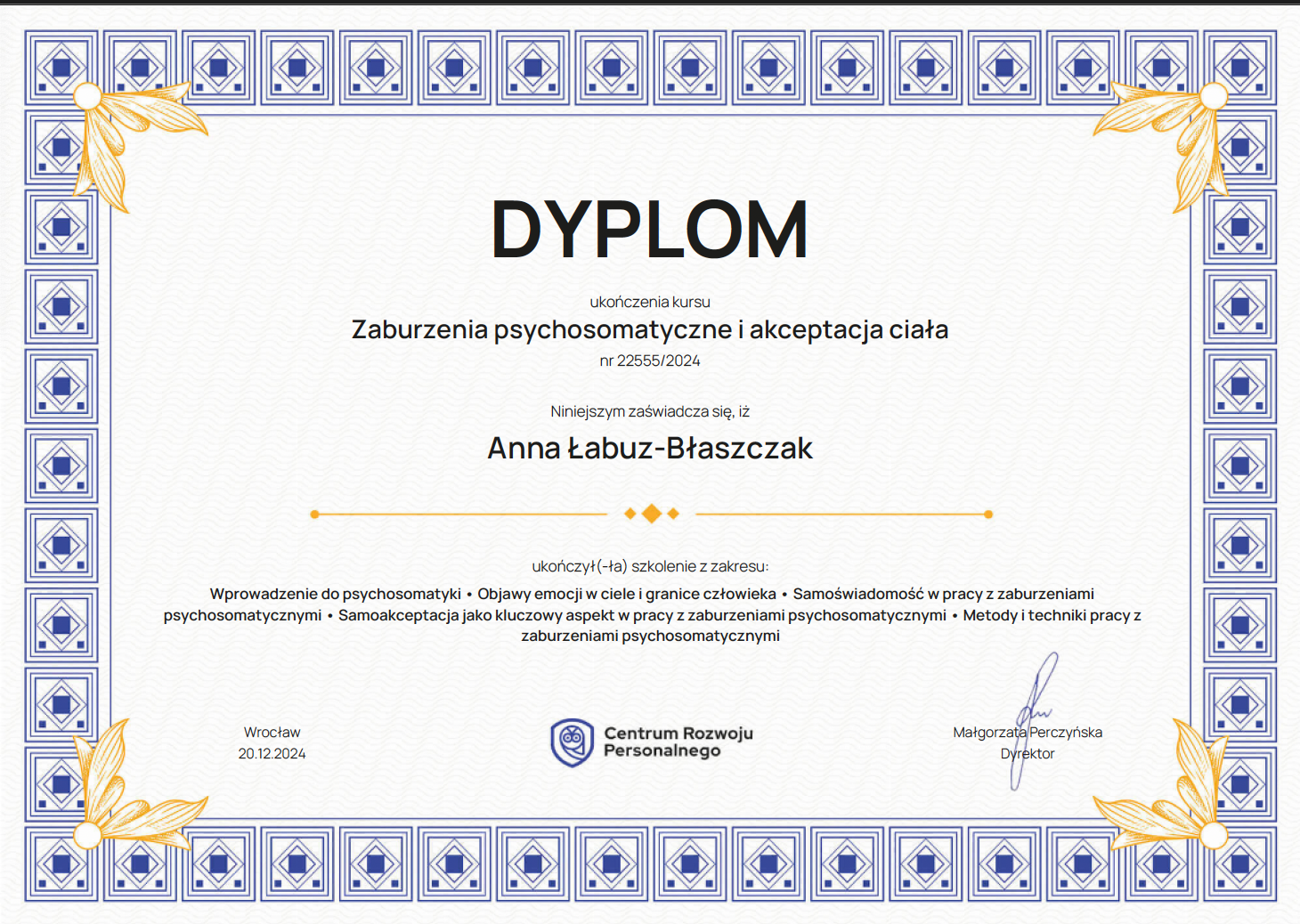 Obecnie kontynuuję poszerzanie kwalifikacji w nurtach trzeciej fali. Chcę również lepiej rozumieć osoby neuroatypowe, do których sama się zaliczam — to doświadczenie nauczyło mnie, jak ważna jest autentyczność w terapii. Pracuję pod regularną superwizją u dr Natalii Liszewskiej, bo wierzę, że najlepszą pomocą jest terapeuta, który sam nieustannie się rozwija.
