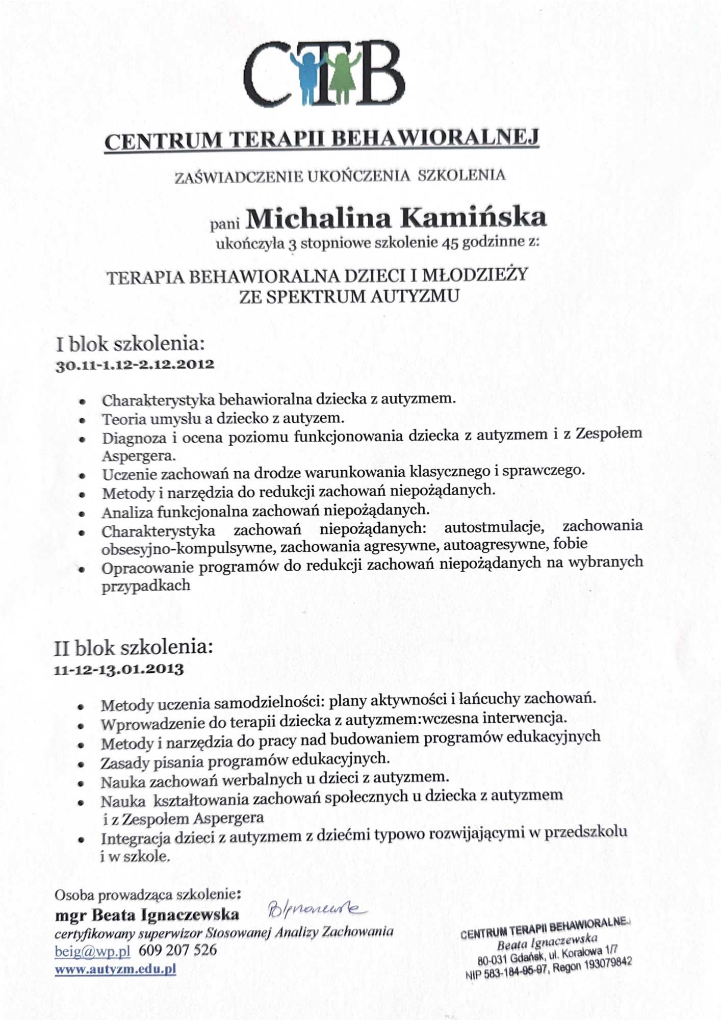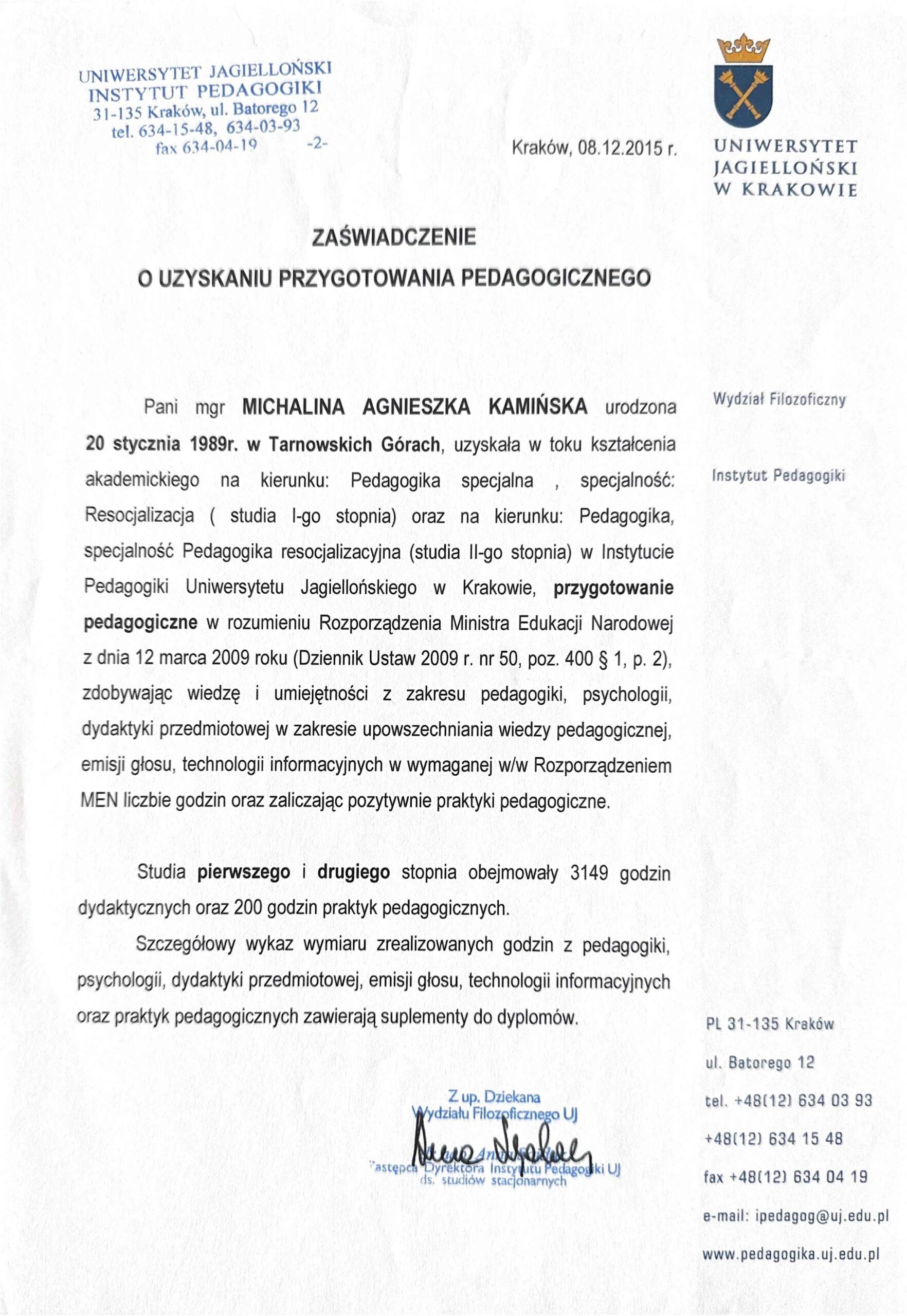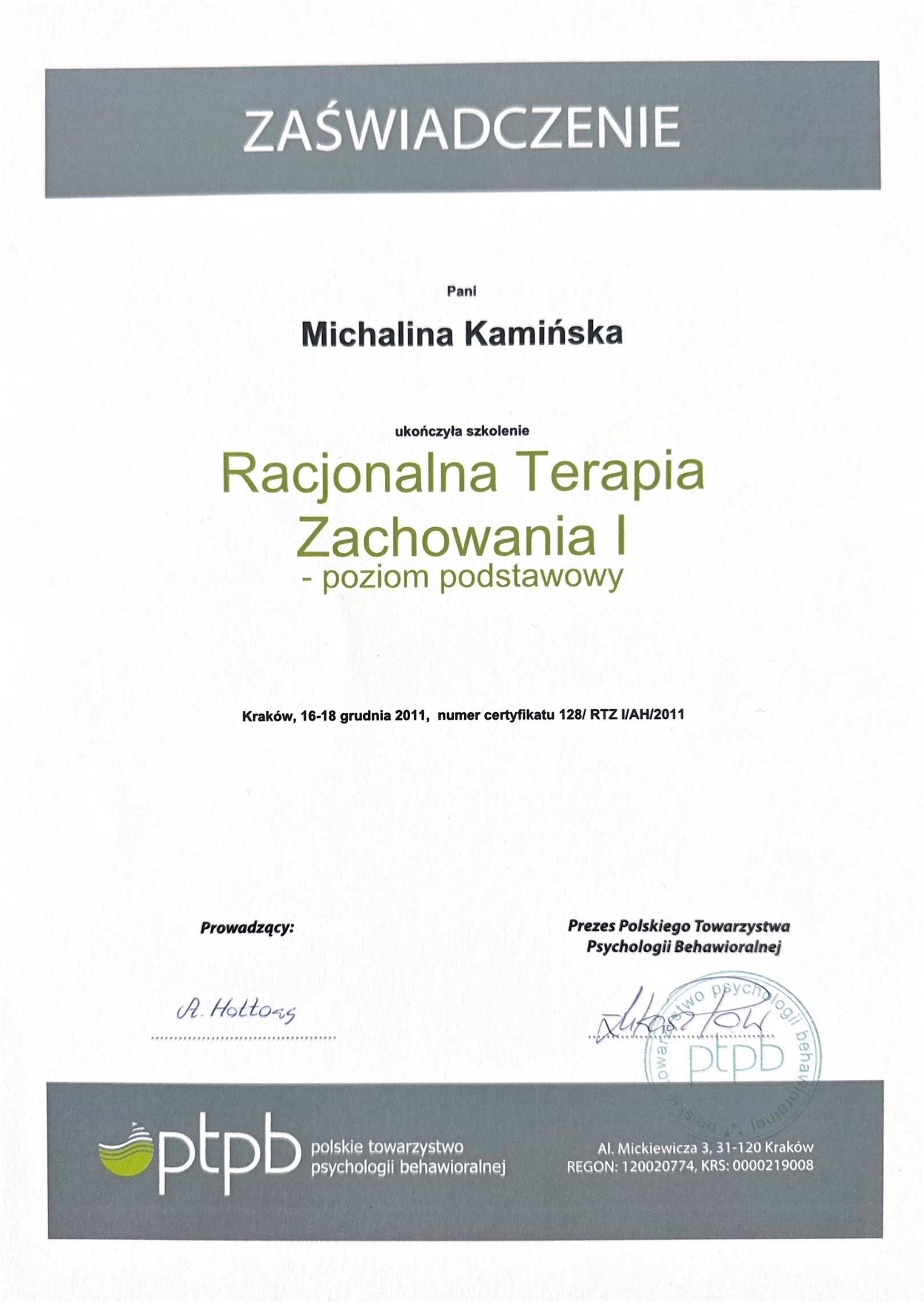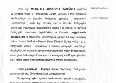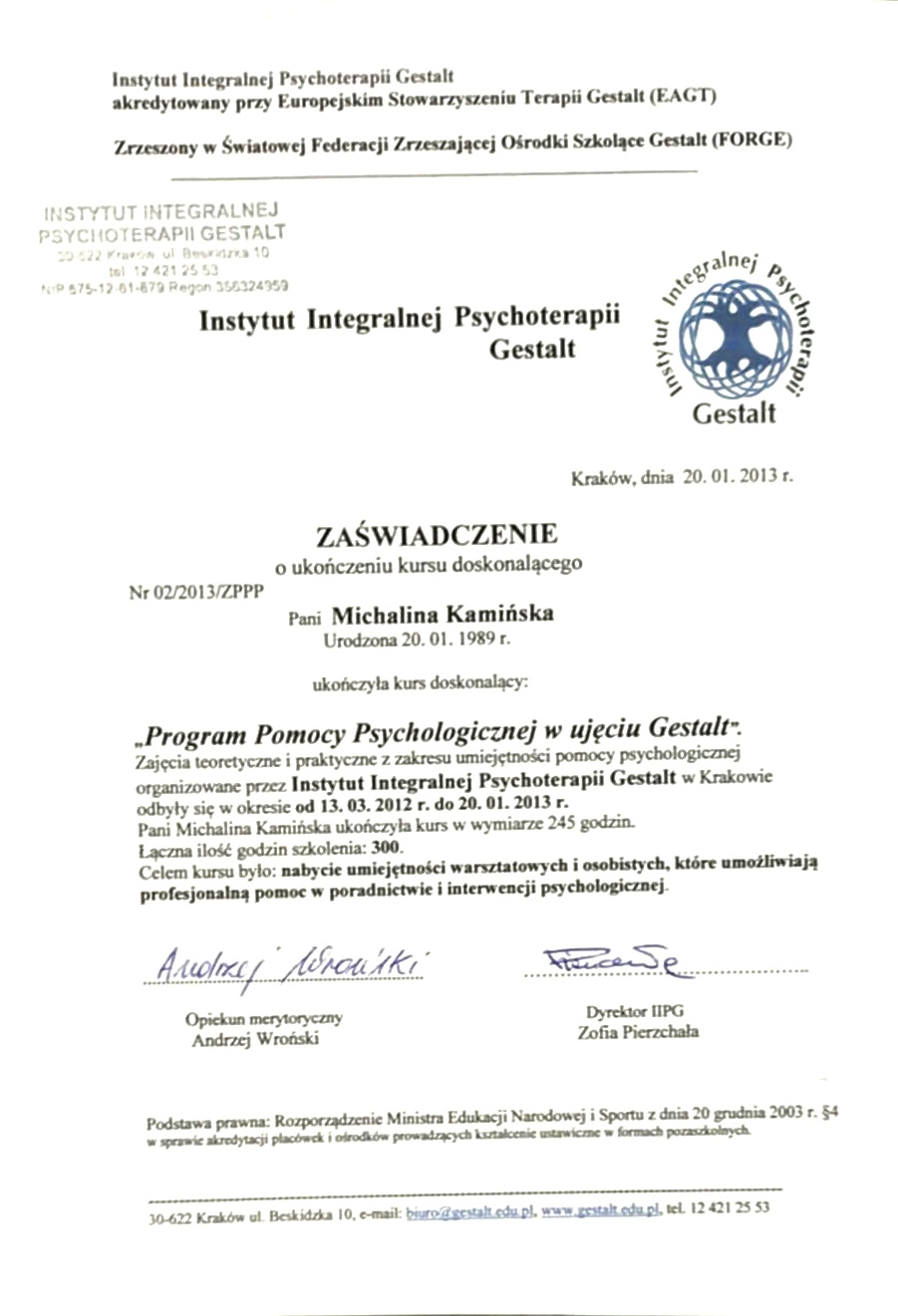 Regulamin gabinetu i polityka prywatności Michalina Kamińska.
