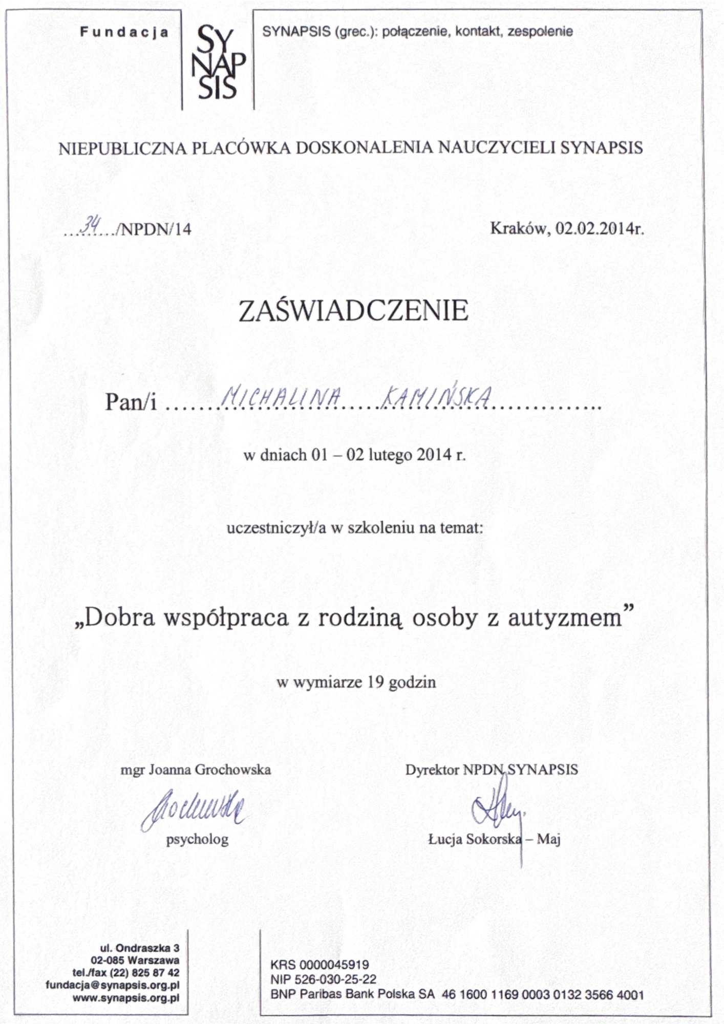 Bezpłatna zmiana terminu lub anulacja do 24h przed planowanym rozpoczęciem spotkania.