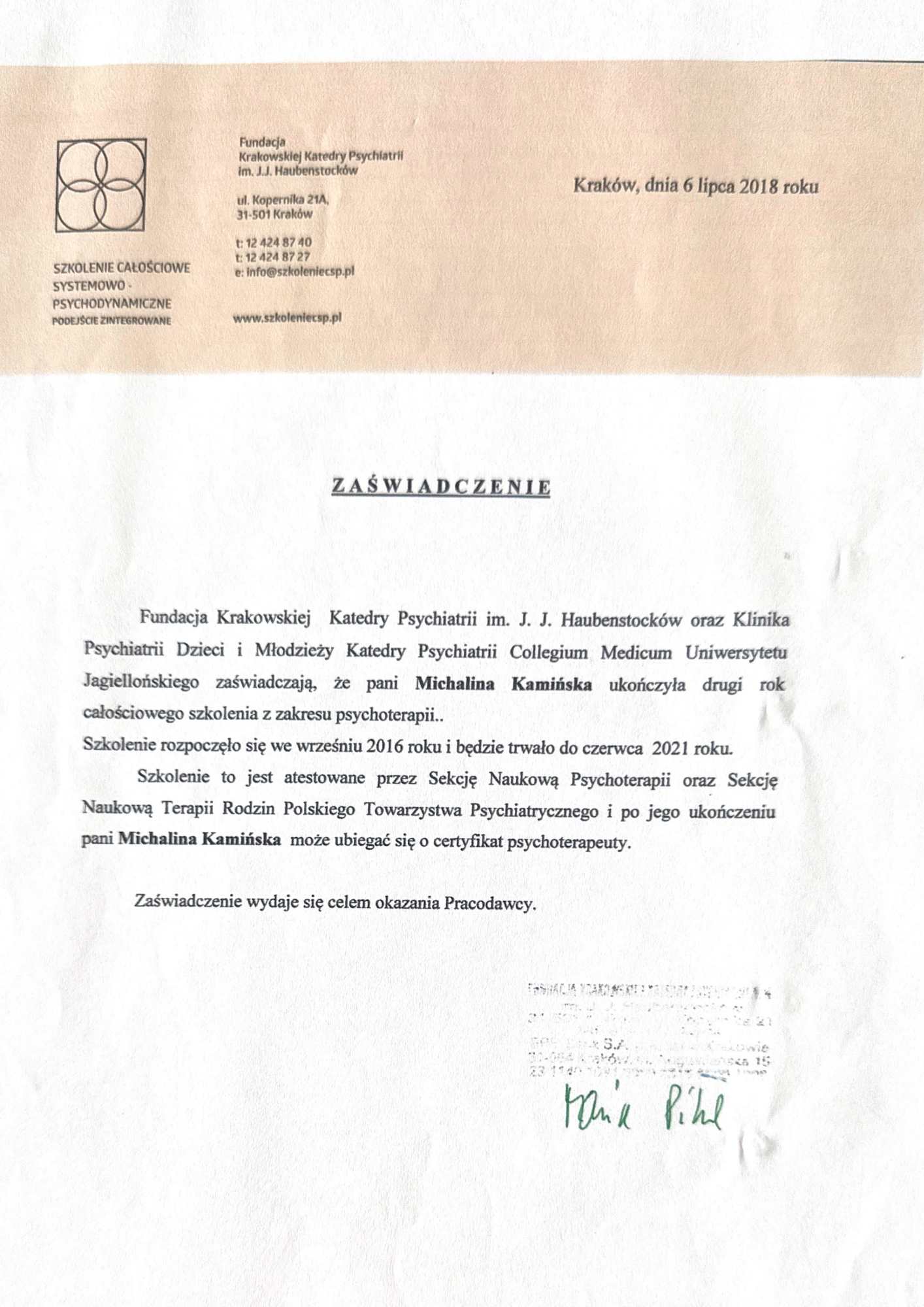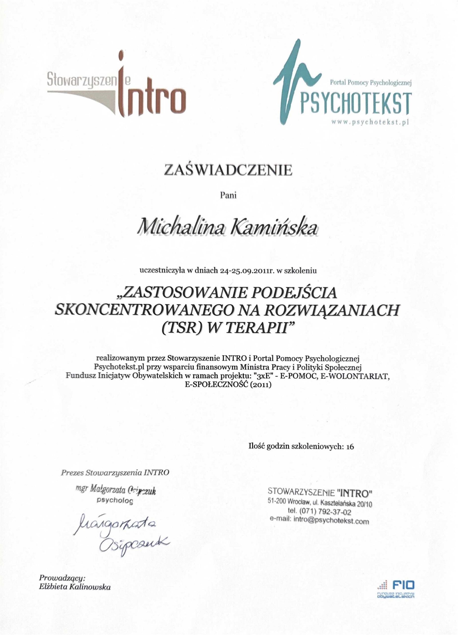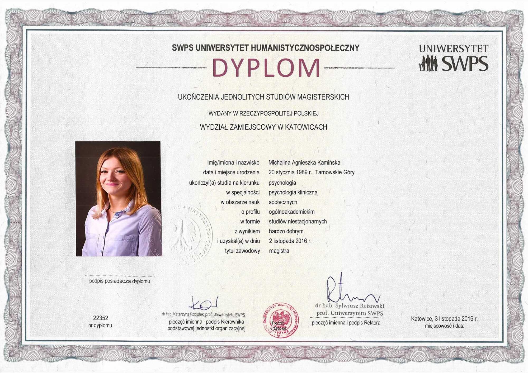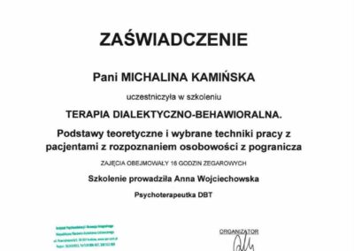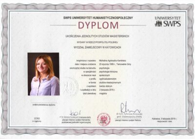 mgr psychologii, certyfikowana nauczycielka mindfulness, psychoterapia systemowa i 3 fali terapii poznawczo-behawioralnych