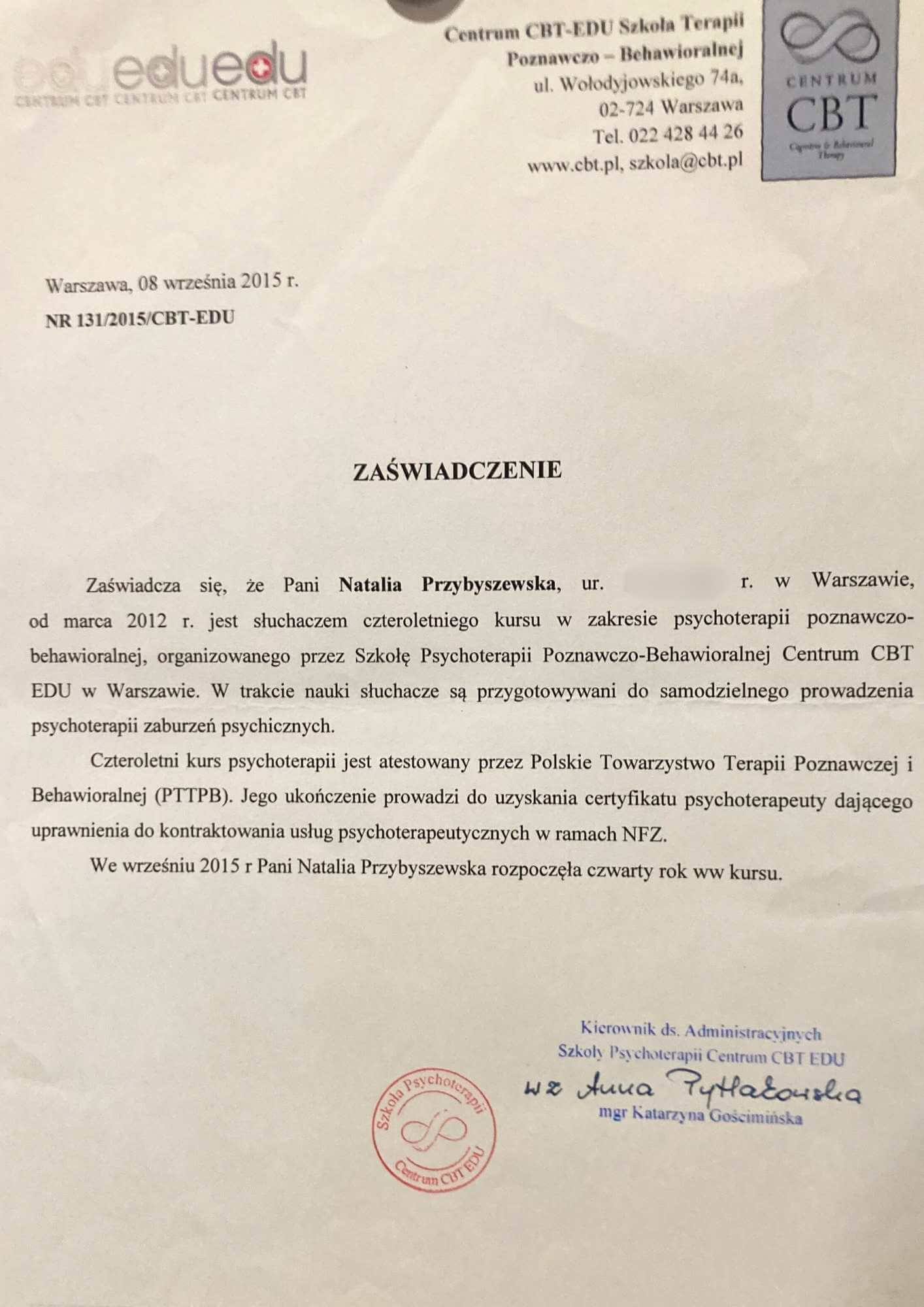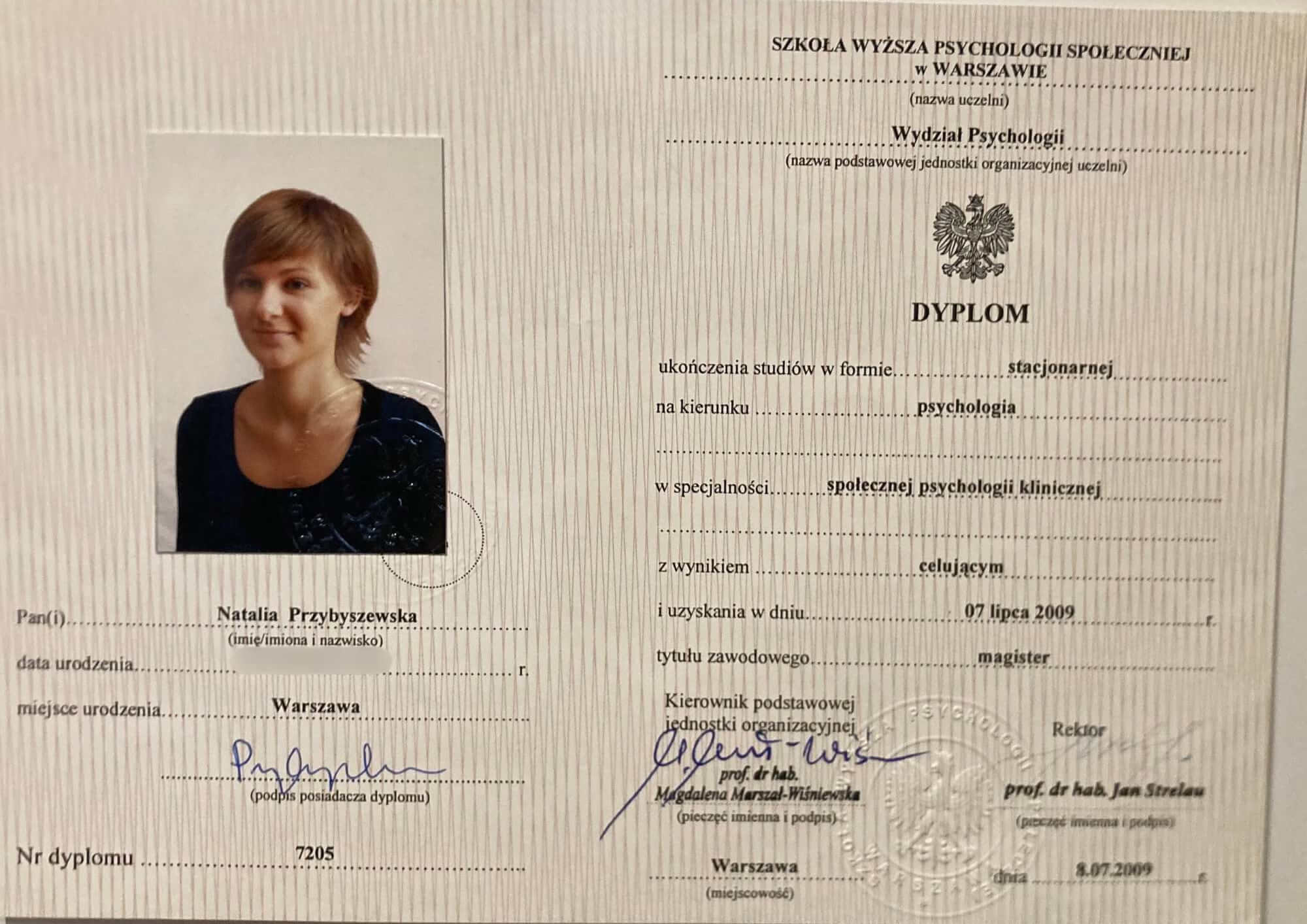 mgr psychologii, psychoterapeutka poznawczo-behawioralna i terapii schematu